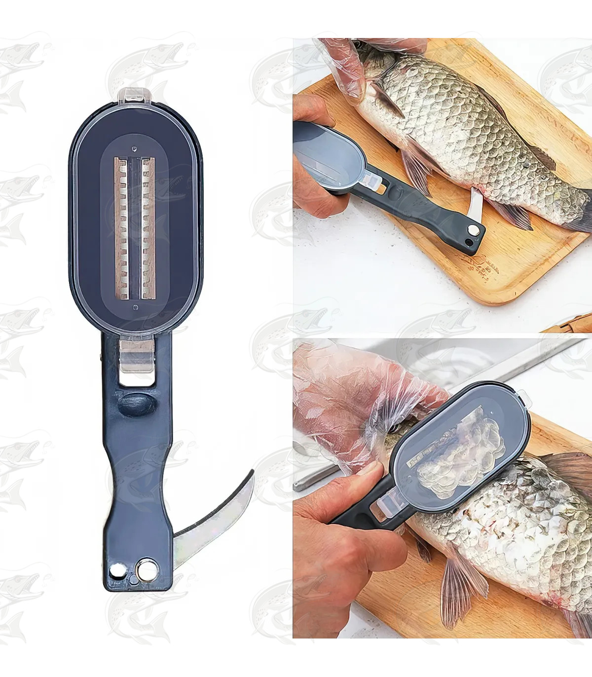 Abivahend kala soomuste eemaldamiseks, mis tagab puhtama töö - kogub soomused spetsiaalsesse kogujasse.