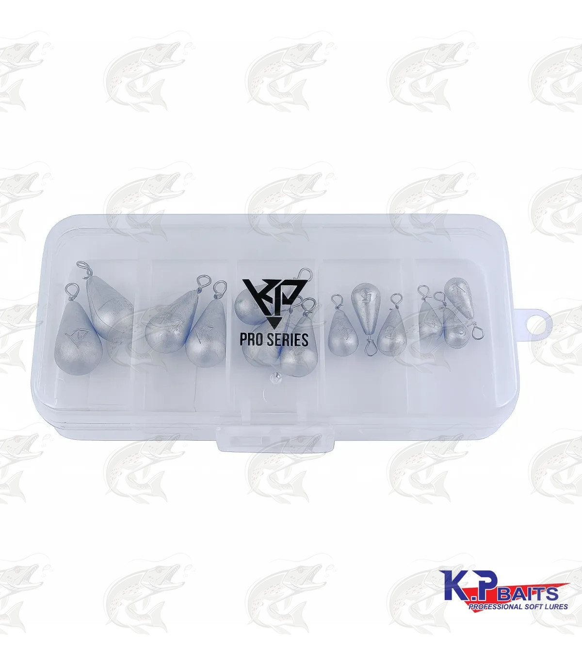 K.P BAITS kummilantide ja jig-rig raskuste komplekt sisaldab 13 raskust, mis võimaldavad kiirelt reguleerida landi ujuvussügavust ja viskekaugust.