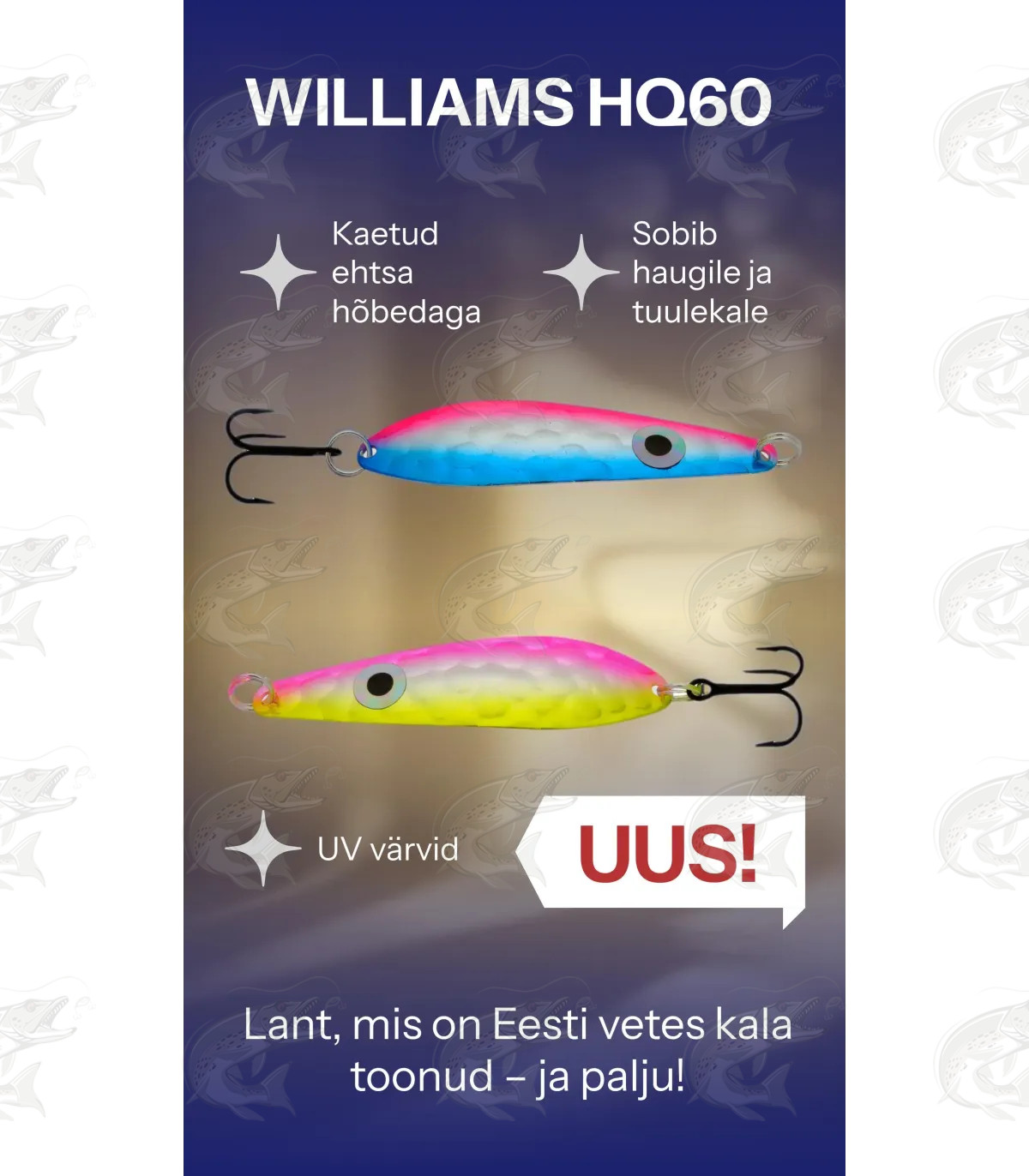 Ehtsa hõbedaga kaetud Williams HQ60 lante on intensiivselt testitud erinevates veekogudes. Ligi sajandi vältel on Williamsi landid toonud megasaake nii algajale kui edasijõudnud kalamehele.